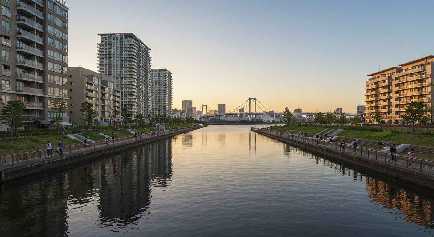 こんな願いを持つファミリーにとって、芝浦は理想的な選択肢と言えるでしょう。運河沿いには遊歩道が整備され、休日には家族でのんびり散歩を楽しむ住民の姿が見られます。水辺の風を感じながらの散歩は、都心とは思えない贅沢な時間です。